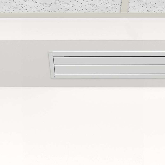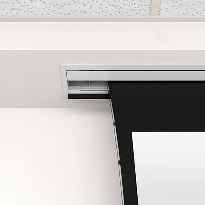 The Tensioned Advantage ceiling recessed electric screen series is designed with ceiling trim in place, to conceal the rough opening eliminating the need to complete additional trim work once the screen is installed. Its two-stage installation option affords the screen case to be installed during the rough-in construction stage, and the screen surface assembly during the finishing stage. Sliding installation brackets allow mounting flexibility for easy attachment of the screen housing to the structure above the drop ceiling. Tensioned Advantage with SightLineâ„¢ Da-Lite's new cable drop feature, SightLine, available with the tried-and-true Tensioned Advantage (up to 177" Diagonal 16:9 and up to 182" Diagonal 16:10) electric screen, gives the impression of a floating screen. A suspension system in its single roller design features 3 or 4 thin cables eliminating the need for black drop - the black border above the projection screen. While the market is accustomed to specifying drop distance upon ordering, now vertical placement of the screen can be variable as the cables accommodate a range of drop distances up to 70" (standard) or 10' (option) between the ceiling and the top of the screen - making ordering a snap. What's more, this feature creates usable space above the viewing area to preserve architectural interests and provides the opportunity for camera/speaker placement. Enhanced aesthetics, painless ordering, smooth installation and future proofing for height adjustability - this is the fine line between status quo and jaw drop. 21:9 Ultrawide Format The Tensioned Advantage with SightLine is now available in 21:9 Ultrawide Format part numbers. Ultrawide format is quickly becoming the standard for displaying hybrid video conferencing solutions, where all attendees, whether they are in person or virtual, are equitably seen and heard.