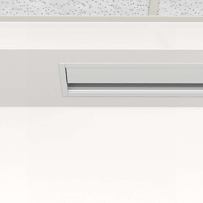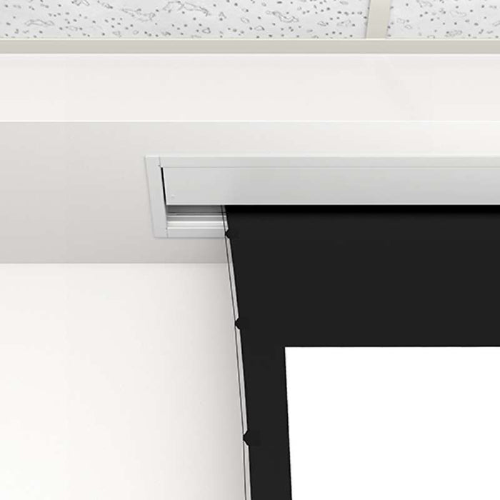 The Tensioned Advantage® ceiling recessed electric screen series is designed with ceiling trim in place, to conceal the rough opening eliminating the need to complete additional trim work once the screen is installed. Its two-stage installation option affords the screen case to be installed during the rough-in construction stage, and the screen surface assembly during the finishing stage. Sliding installation brackets allow mounting flexibility for easy attachment of the screen housing to the structure above the drop ceiling. Tensioned Advantage with SightLine™ Da-Lite’s new cable drop feature, SightLine, available with the tried-and-true Tensioned Advantage (up to 177" Diagonal 16:9 and up to 182" Diagonal 16:10) electric screen, gives the impression of a floating screen. A suspension system in its single roller design features 3 or 4 thin cables eliminating the need for black drop – the black border above the projection screen. While the market is accustomed to specifying drop distance upon ordering, now vertical placement of the screen can be variable as the cables accommodate a range of drop distances up to 70" between the ceiling and the top of the screen – making ordering a snap. What’s more, this feature creates usable space above the viewing area to preserve architectural interests and provides the opportunity for camera/speaker placement. Enhanced aesthetics, painless ordering, smooth installation and future proofing for height adjustability – this is the fine line between status quo and jaw drop. 21:9 Ultrawide Format The Tensioned Advantage with SightLine is now available in 21:9 Ultrawide Format part numbers. Ultrawide format is quickly becoming the standard for displaying hybrid video conferencing solutions, where all attendees, whether they are in person or virtual, are equitably seen and heard.